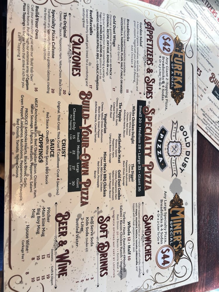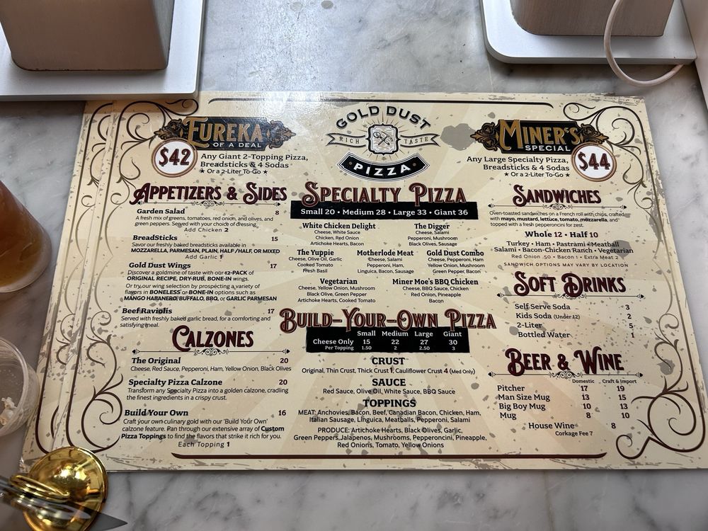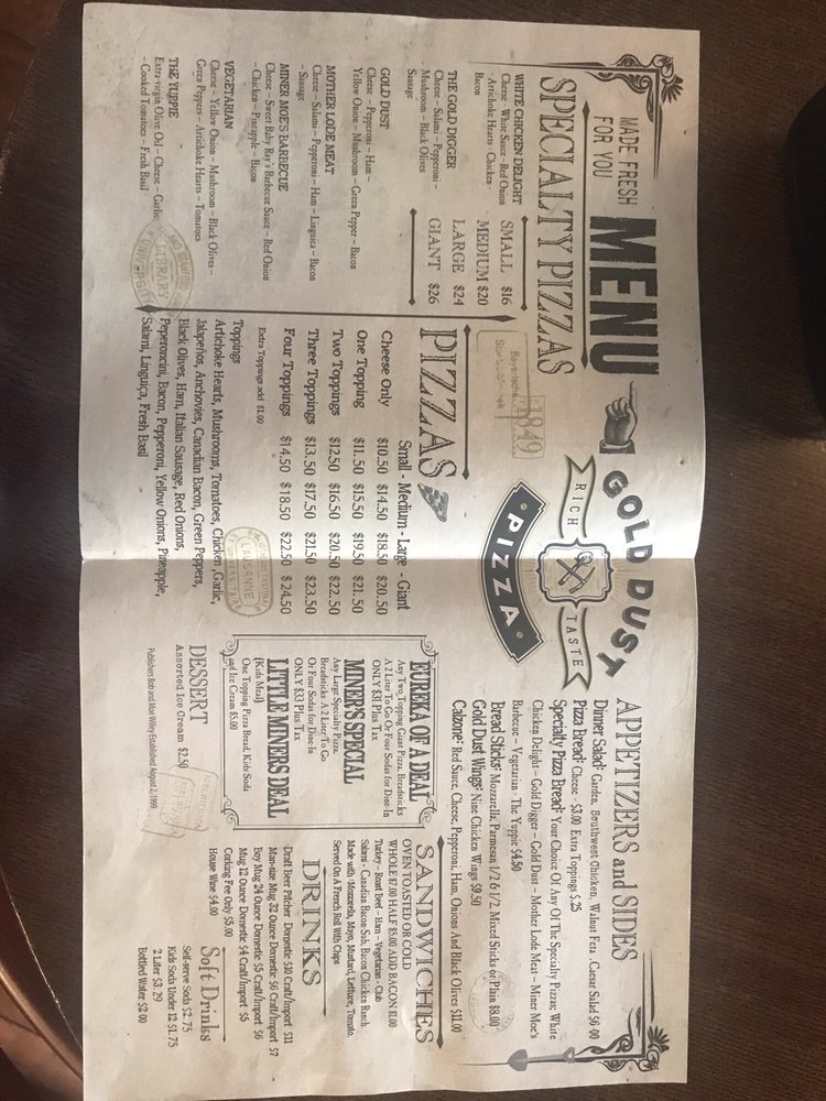 Gold Dust Pizza in Sutter Creek is a hidden gem known for its mouth-watering, mile-high pizzas loaded with toppings. The crispy and chewy crust pairs perfectly with an abundance of meats and cheeses, creating a truly indulgent experience. Customers rave about the unique shoestring cuts of ham and the flavorful mushrooms that adorn the pizzas. The homemade touch is evident in every bite, from the perfectly cooked dough to the generous amounts of cheese. With a cozy atmosphere and friendly staff, this restaurant is a must-visit for anyone craving delicious, hand-tossed pizzas. Make sure to stop by for a taste of their scrumptious offerings and enjoy a selection of local wines and beers to complement your meal. Whether you're a local or just passing through, Gold Dust Pizza is a culinary delight not to be missed.